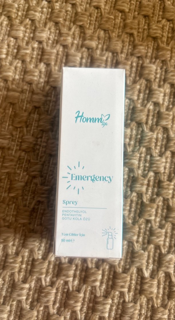 Homm Life Emergency sprey endotheliol, pentavitin ve gotu kola özü içerir. Tüm cilt tipleri için uygundur, 50 ml şişede sunulur.