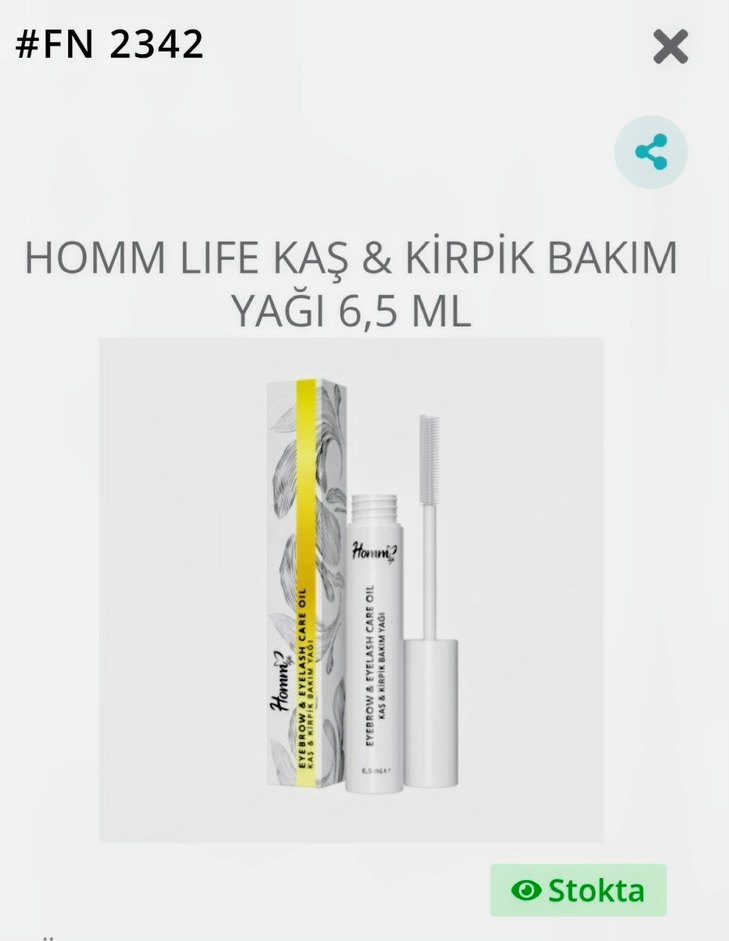 Homm Life kaş ve kirpik bakım yağı, 6,5 ml beyaz ambalajda. Besleyici formülüyle sağlıklı kirpik ve kaşlar için bakım sağlar. Uygulama fırçası ile kolay kullanım.