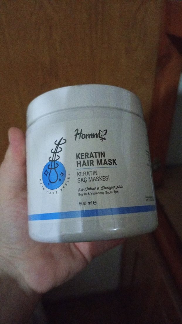 Homm Life Keratin Saç Maskesi 500 ml, boyalı ve yıpranmış saçları besleyip onarmaya yardımcı olur. Saçın güçlenmesini ve yumuşaklığını destekler. ♀️