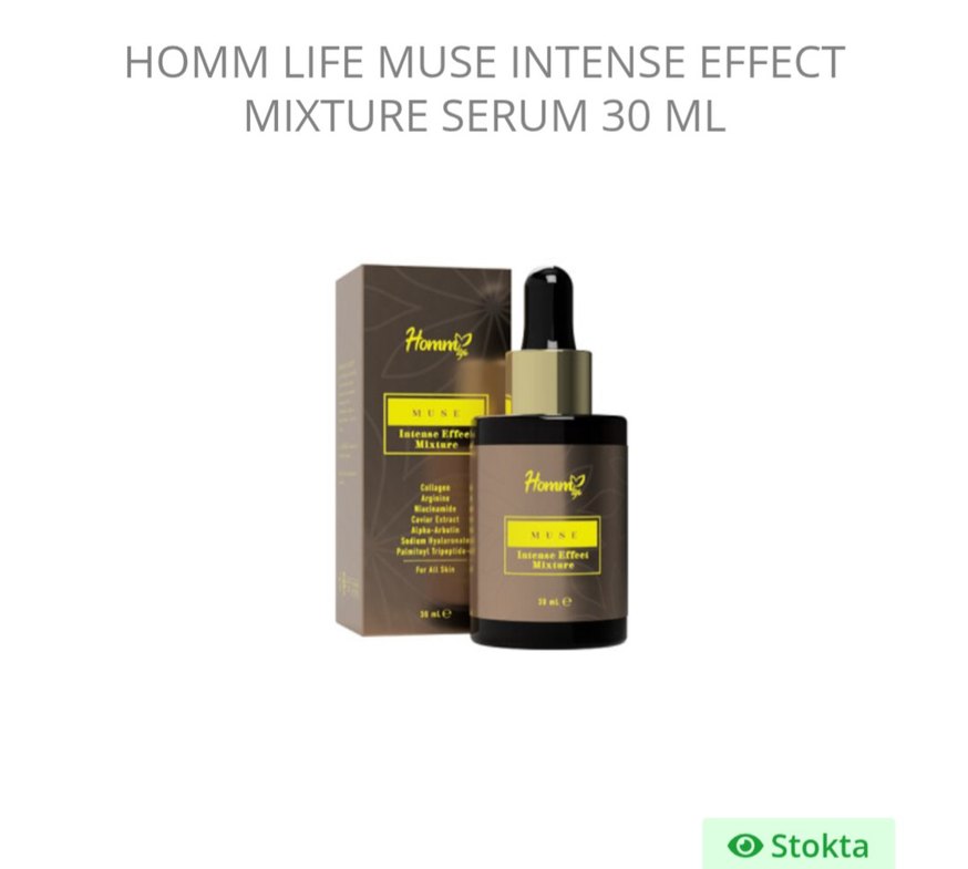Homm Life Muse Yoğun Etkili Karışım Serumu 30 ml şişede, damlalıklı. Kolajen, arginin ve bitki özleri içerir. Tüm cilt tipleri için uygun.