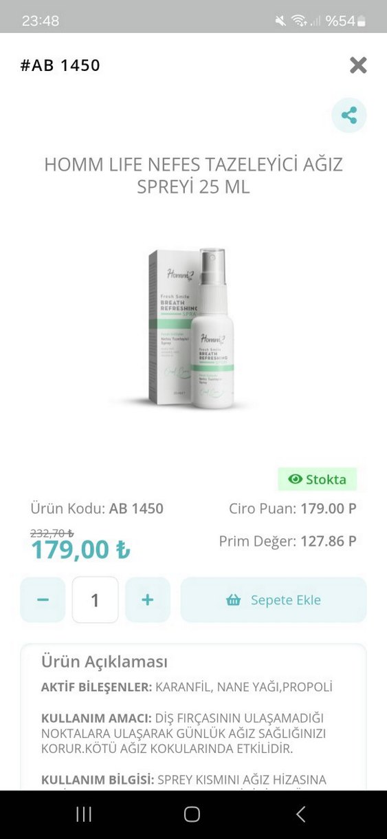 Homm Life nefes tazeleyici ağız spreyi, karanfil, nane yağı ve propolis gibi aktif bileşenler içerir. 25 ml sprey şişede sunulur.