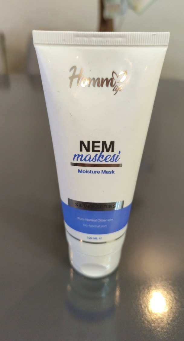 Homm Life Nem Maskesi, yağlı ve normal ciltler için nem sağlar. Silver Serisi kapsamında 100 ml tüpte sunulur.