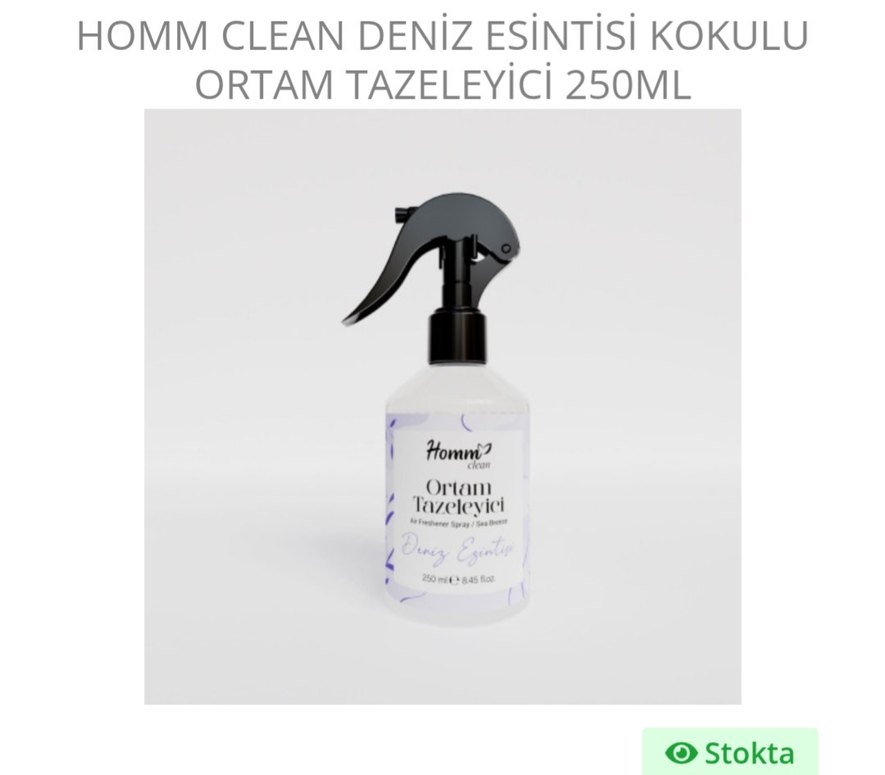 250ml sprey şişede deniz esintisi kokulu ortam tazeleyici. Ortamınızı temiz ve ferahlatıcı koku ile yeniler.