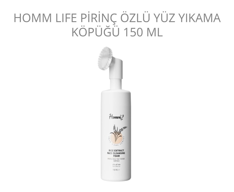 Homm Life pirinç özlü yüz yıkama köpüğü, nazik temizlik için entegre fırçalı, tüm cilt tiplerine uygun. 150 ml şişe.