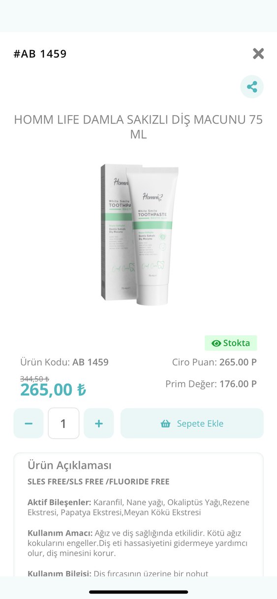 SLES, SLS ve florür içermeyen, sakız aromalı Homm Life diş macunu, nazik temizlik sağlar.