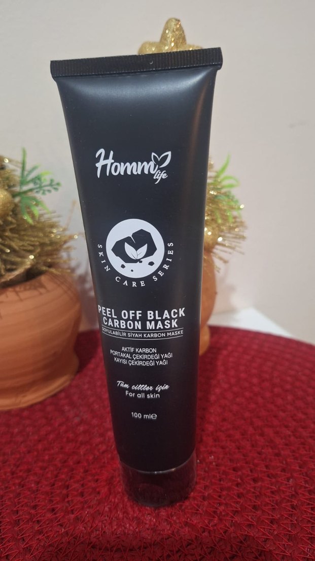 Homm Life Peel Off Siyah Karbon Maske, aktif karbon, portakal yağı ve kayısı çekirdeği yağı içerir, tüm cilt tipleri için uygundur.