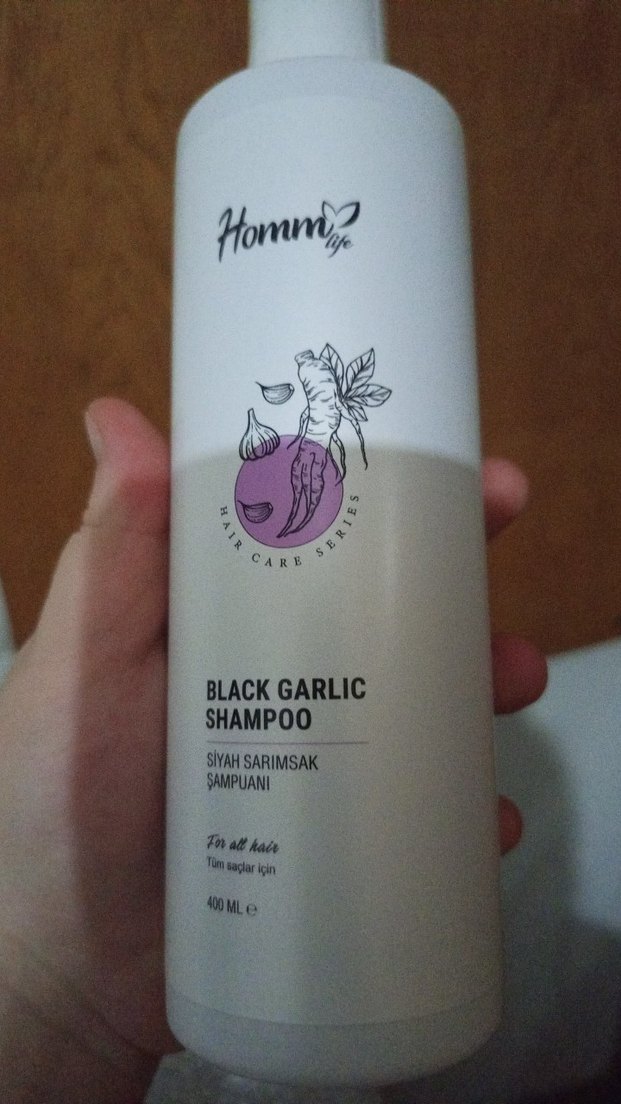 Homm Life Siyah Sarımsak Şampuanı 400 ml, tüm saç tipleri için uygundur ve saç bakım serisinin bir parçasıdır. Saç sağlığını destekler.