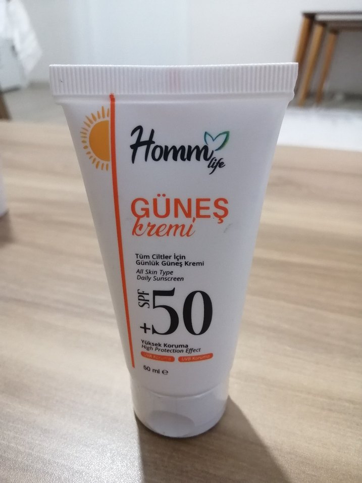 Homm Life SPF 50 güneş kremi, tüm cilt tipleri için yüksek koruma sağlar ve günlük kullanım için uygundur. Cildi güneşten etkili şekilde korur.