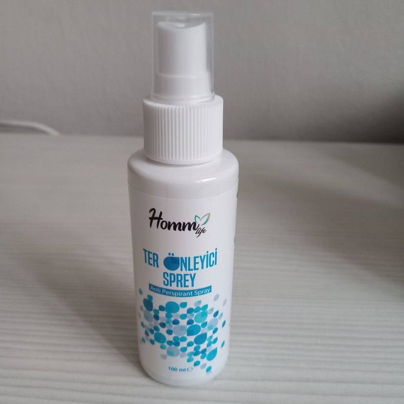 Homm Life ter önleyici sprey, terlemeyi azaltır ve ferah hissettirir. 100 ml sprey şişede sunulur.