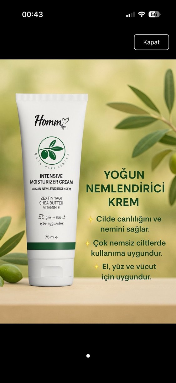 Homm life Yoğun Nemlendirici Krem 75 ml