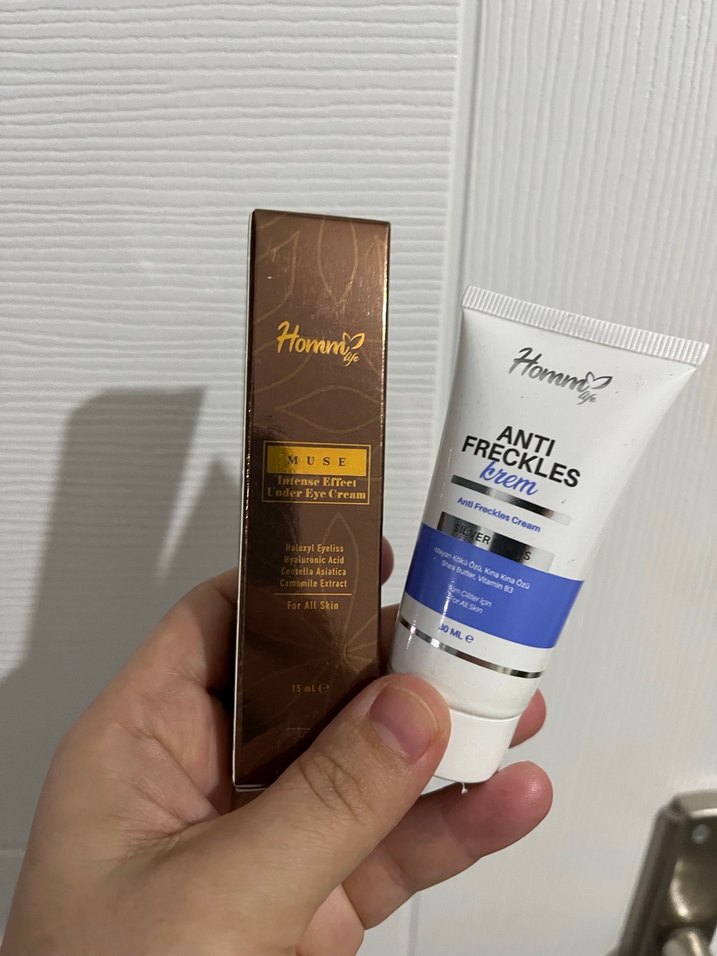 Homm Muse etkili göz kremi ve leke karşıtı krem. Tüm cilt tipleri için uygundur.