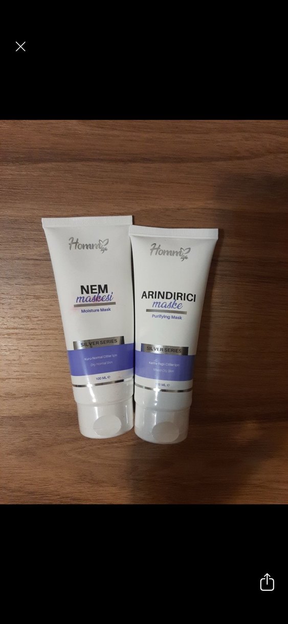 Homm maskeleri, nemlendirici ve arındırıcı olmak üzere 100 ml tüplerde, ♀️