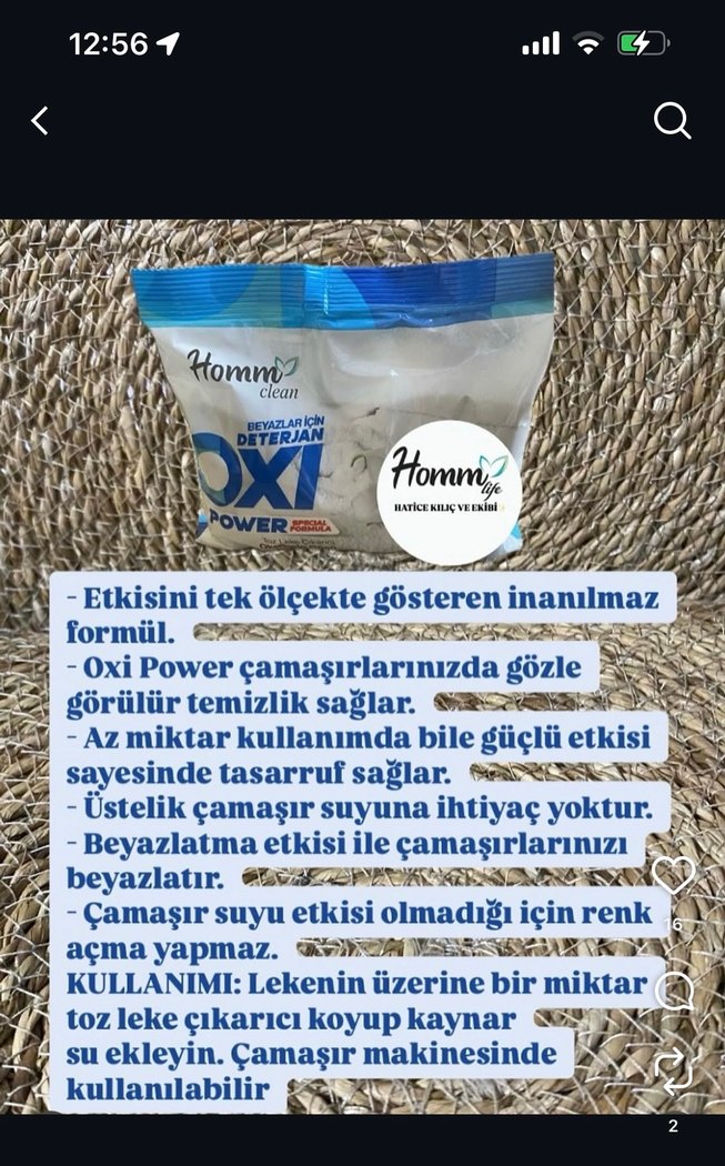 Homm Oxi Power, beyazlatıcı etkisiyle çamaşırları beyazlatır ve leke çıkarır. Az miktarda kullanılır, çamaşır suyuna gerek kalmaz, renk açmaz.