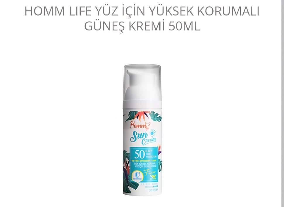 Homm Sun Cream SPF 50+, yüz için yüksek koruma sağlayan hafif ve yağsız formüle sahiptir. Güneş hasarına karşı korur ve hassas ciltler için uygundur.