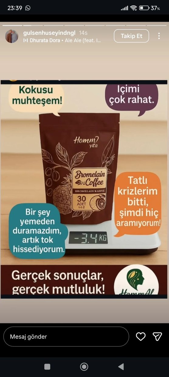 Homm Vita Bromelain Kahve, hoş kokusu ve rahat içimiyle tatlı krizlerini azaltır, tok hissettirir ve kilo kontrolüne destek olur. ☕️
