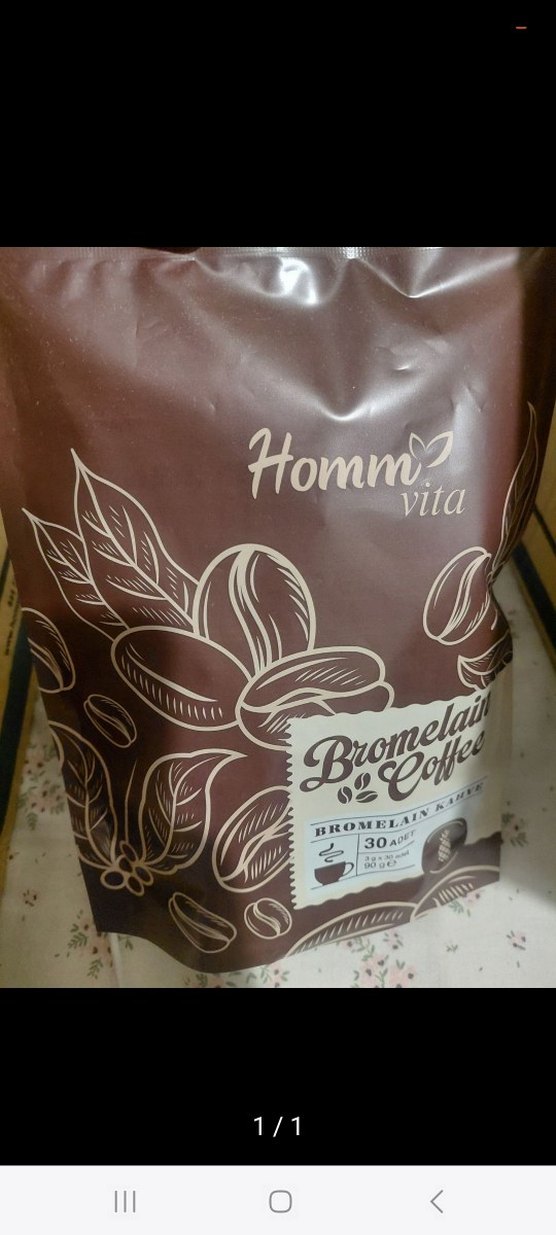 Homm Vita Bromelain kahve tozu, 30 adet porsiyon içerir ve bromelain ile karışık kahve sunar. Paket kahverengidir. ☕