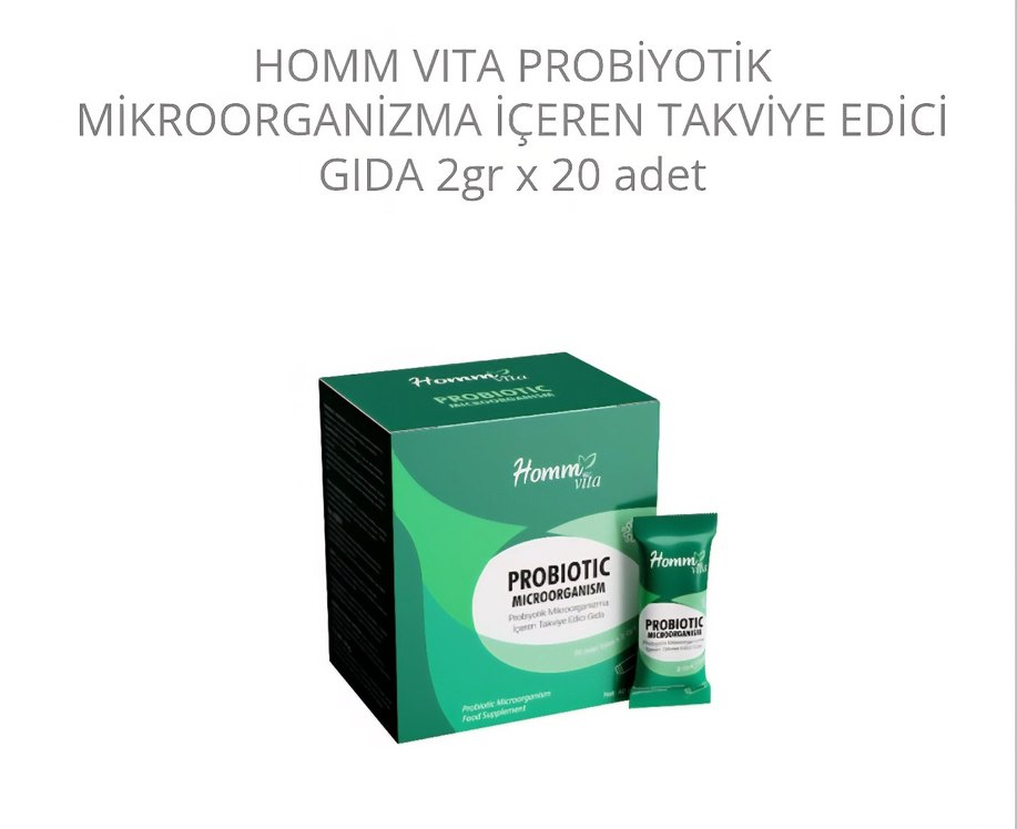Homm Vita probiyotik takviye gıda, organizmayı destekleyen mikroorganizmalar içerir. 20 adet, her biri 2 gramdır.
