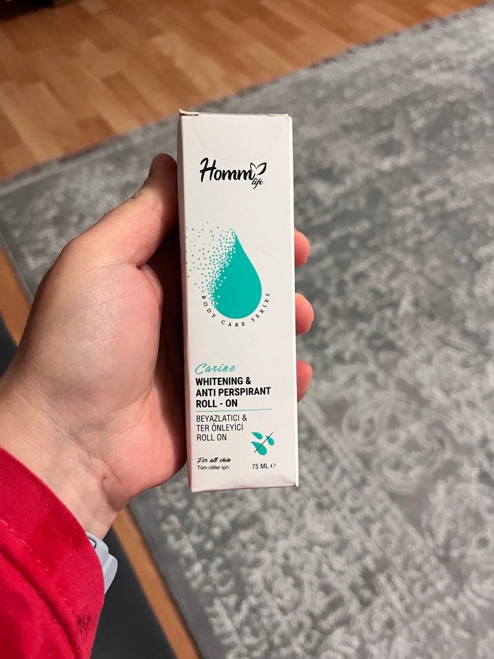 Homma Carine roll-on deodorant, beyazlatıcı ve ter önleyici etkisiyle nazik bir bakım sunar. 75 ml, terlemeyi azaltır ve koltuk altı cildini aydınlatır. Normal satış fiyatı görselde mevcut. Uyguna vereceğim..