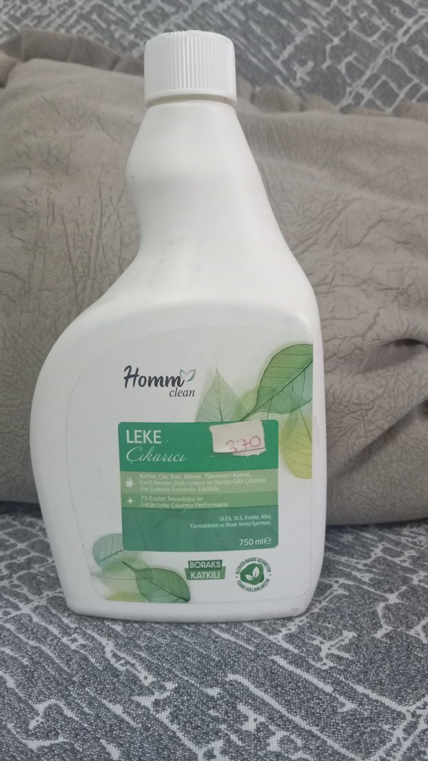 Boraks katkılı Homma Clean 750 ml leke çıkarıcı şampuan, çeşitli lekeleri etkili şekilde temizler.