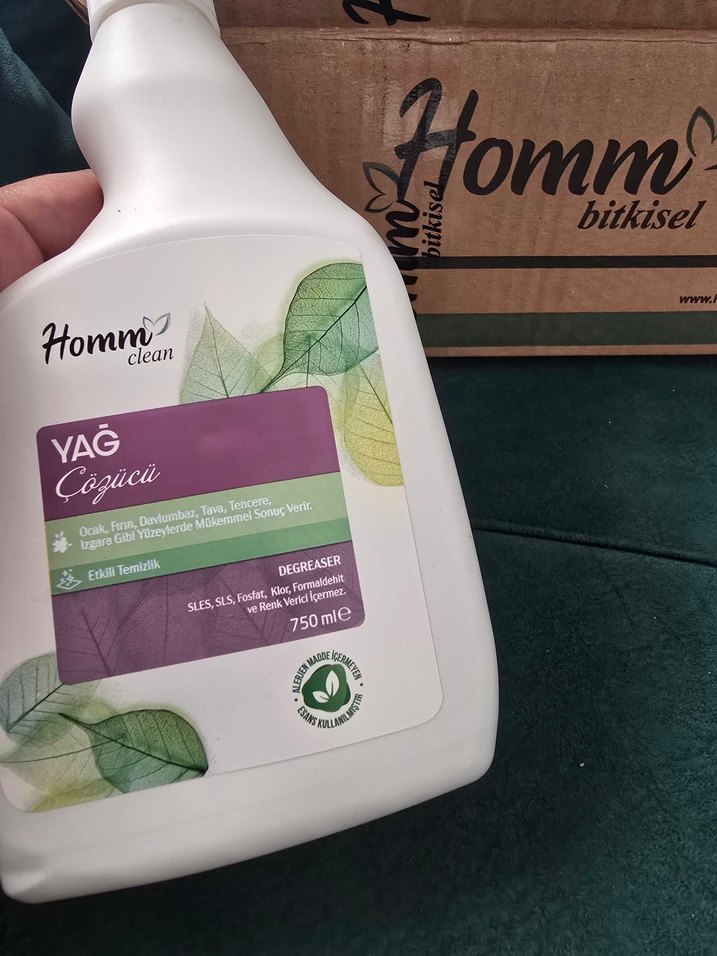 Hommbitkisel yağ ve kir çözücü sprey, ocak, fırın, davlumbaz, tava ve tencerede mükemmel sonuç verir. Izgara gibi yüzeylerde etkilidir.