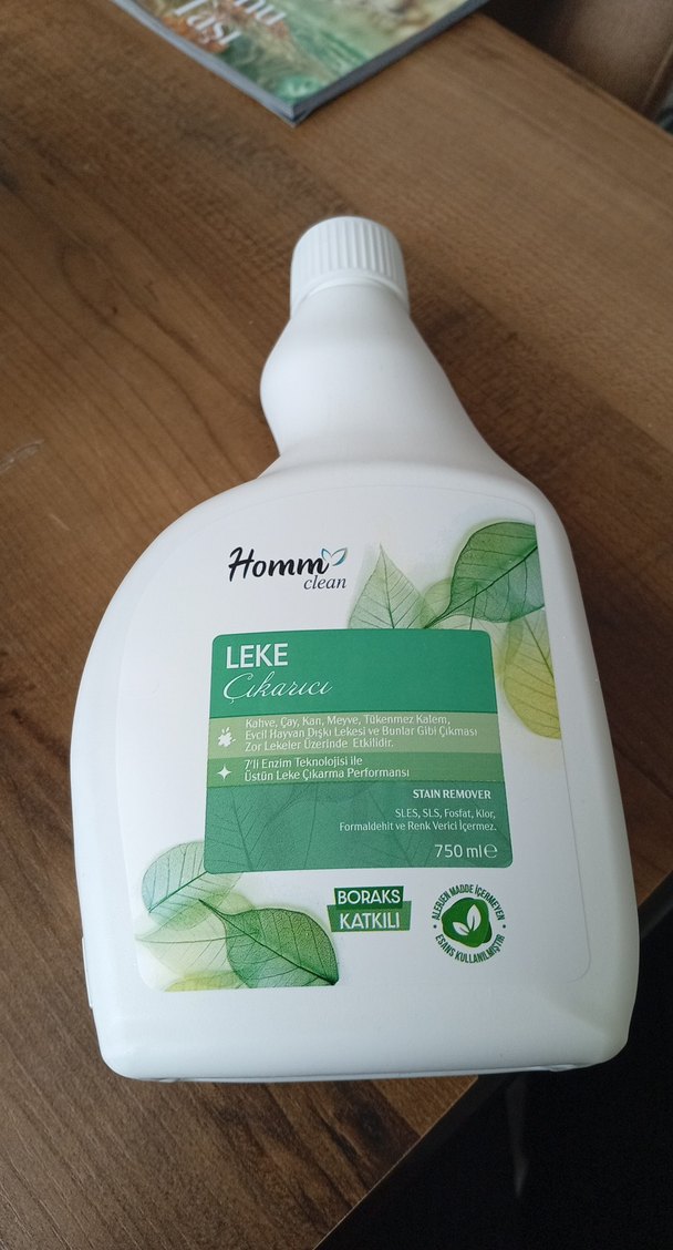 Hommd marka boraks katkılı 750 ml leke çıkarıcı, yağ, pas gibi lekeleri üstün teknoloji ile giderir.