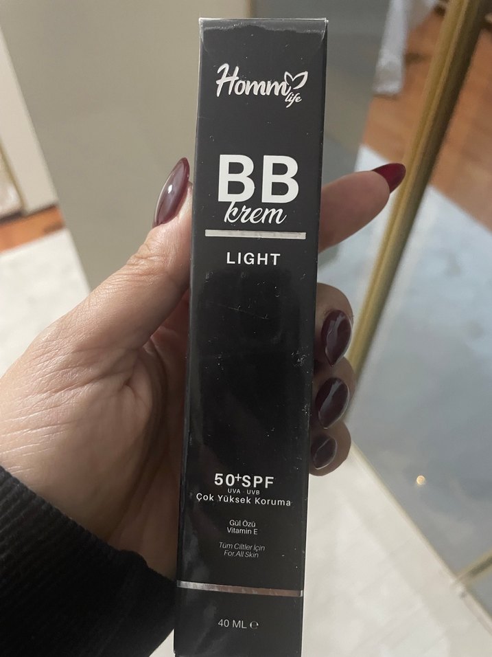 Homme BB krem light tonunda, SPF 50+ yüksek koruma sağlar. Gül yağı ve E vitamini içerir. Tüm cilt tipleri için uygundur. 40 ml.hiç kullanılmadı kutusu dahi açılmadı.markası homm bitkisel kadir ezildinin tanıtım yaptığı bitkisel bir marka ben çok beğendiğim için stok yapmıştım fazla olanı satıyorum göZeneklere dolmaz çok pürüzsüz bir cilt sağlar