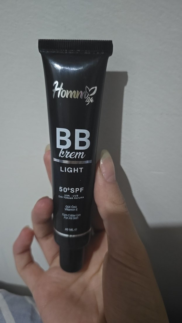 Homme BB krem, açık bej tonunda, 50+ SPF ile yüksek güneş koruması sağlar. Gül yağı ve E vitamini içerir, tüm cilt tiplerine uygundur.