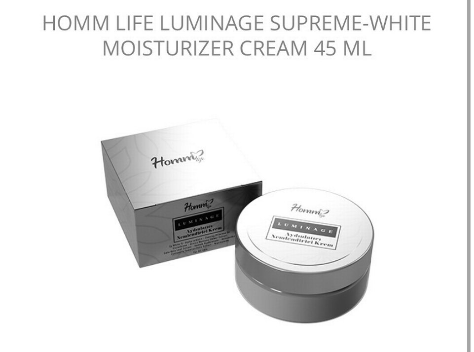Homme Life Luminage Supreme nemlendirici krem, 45 ml kavanozda sunulur, cildi nemlendirir ve besler. Günlük cilt bakımı için parlaklık sağlar. Ürün Açıklaması AKTİF BİLEŞENLER Cystoseira tamariscifolia (Gökkuşağı Algi), Çuha çiçeği yağı, Arbutin, Niacinamide, Glutathione, Arnica montana özü, Gotu kola özü, Hyalüronik asit, Lavanta yağı, Cadı fındığı özü, Astaxanthin KULLANIM BİLGİSİ: Sabah-akşam temizlenmiş cilde uygulamanız önerilir. Bir güneş ürünü ile birlikte kullanımı önerilir.