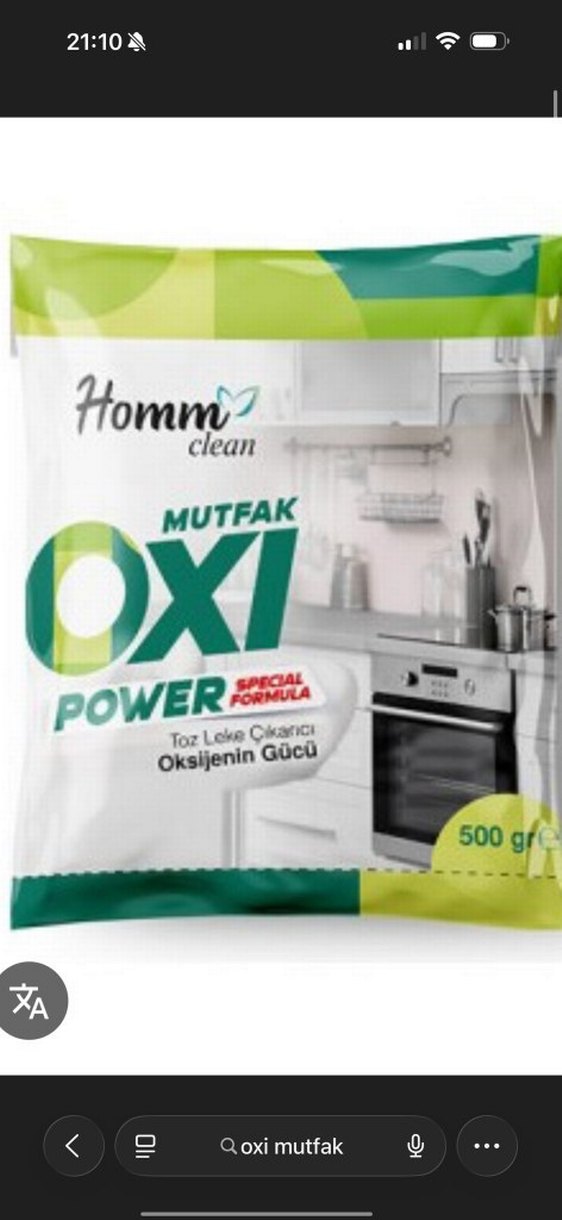 Homme Mutfak Oxi Power, oksijen gücüyle çalışan 500gr toz leke çıkarıcıdır.