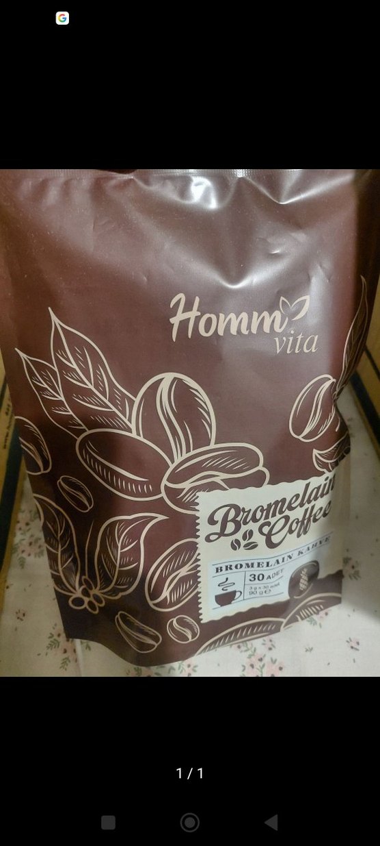 Homme Vita Bromelain Kahve tozu, koyu kahverengi ambalajda, 30 adet porsiyon içerir. Doğal bromelain özelliği bulunur. ☕
