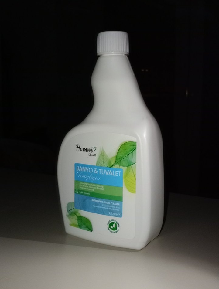 Hommi banyo ve tuvalet temizleyici, ferah koku ve etkili temizlik sağlar. 750 ml şişede sunulur.