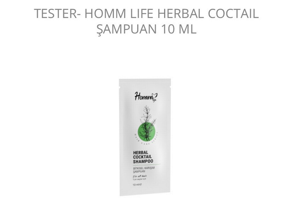 Hommi Bitkisel Karışım Şampuan 10 ml'lik pakette, doğal karışım içerir. NOT: TESTER SİPARİŞLERİNİ 200 tl ve ÜZERİ SİPARİŞLERDE ALIYORUM. SADECE TEK BİR TESTER ÜRÜN GÖNDERİMİ YAPMIYORUM. BİLGİNİZ OLSUN. SADECE TESTER ÜRÜN ALIMI YAPMAK İSTEYENLER EN AZ 6 ADET VE ÜZERİ GÖNDERİM SAĞLAYABİLİRİM. ANLAYIŞINIZ İÇİN TEŞEKKÜR EDER KEYİFLİ ALIŞVERİŞLER DİLERİM.