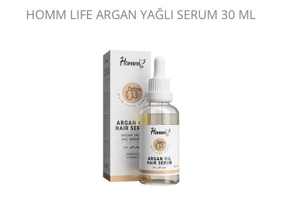 Hommı Life Argan Yağlı Saç Serumu, argan yağı ve E vitamini içerir, saç bakım ve besleme sağlar. Ürün Açıklaması Aktif Bileşenler: Argan Yağı, Vitamin E Kullanım Şekli: Yıkanmış ve nemi alınmış saçlara küçük bir miktar serumu avuç içinizde yayarak eşit biçimde uygulayın. Saçın uzunluğuna ve kalınlığına göre miktarı arttırabilirsiniz. Daha sonra fön çekebilir yada kurumaya bırakabilirsiniz. Kuru saça da uygulayabilirsiniz . DURULAMAYINIZ…