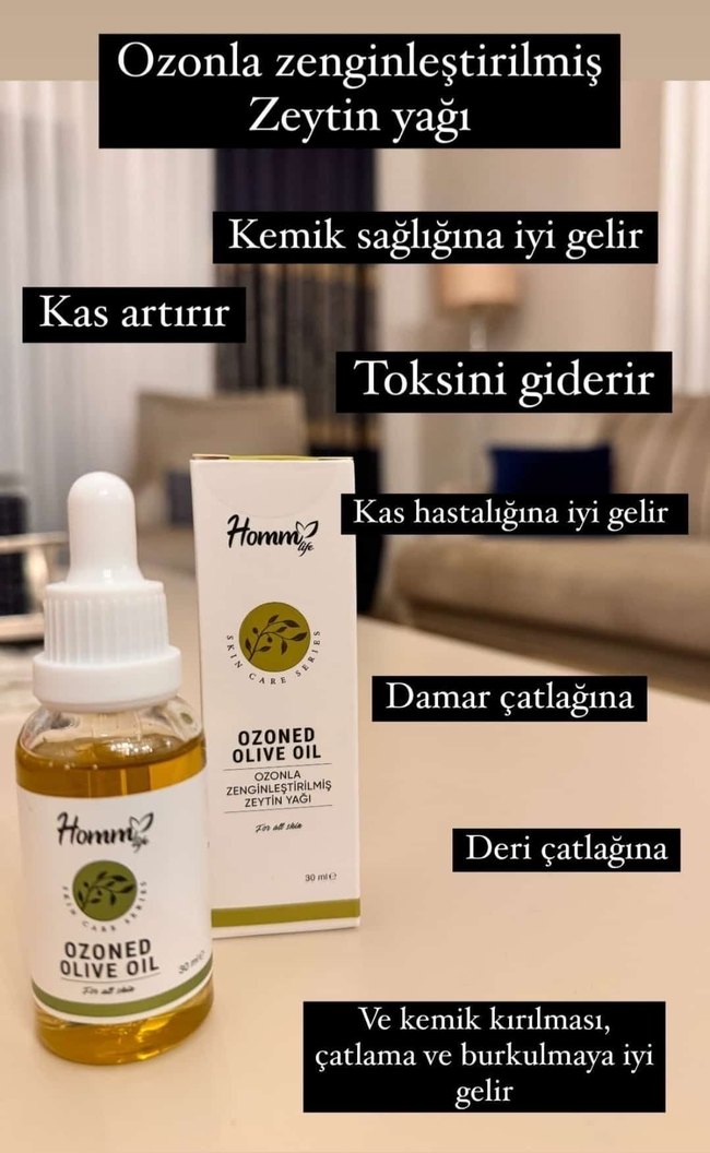 Hommm Ozonlu Zeytinyağı serumu, toksin giderici, kas artırıcı ve kemik sağlığına faydalı özellikler taşır. Damar ve deri çatlaklarına, kas hastalıklarına ve kemik kırılması ile burkulmalara iyi gelir.