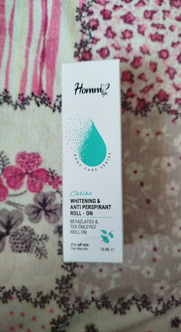 Hommy Carine beyazlatıcı ve ter önleyici roll-on, 75ml boyutunda koltuk altı bakımı sağlar.