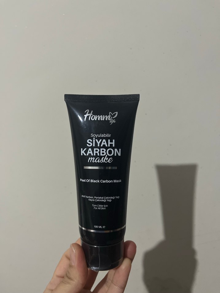 Hommy Life siyah karbon soyulabilir maske, tüm cilt tipleri için aktif karbon ve C vitamini içerir, derinlemesine temizlik ve aydınlatma sağlar.