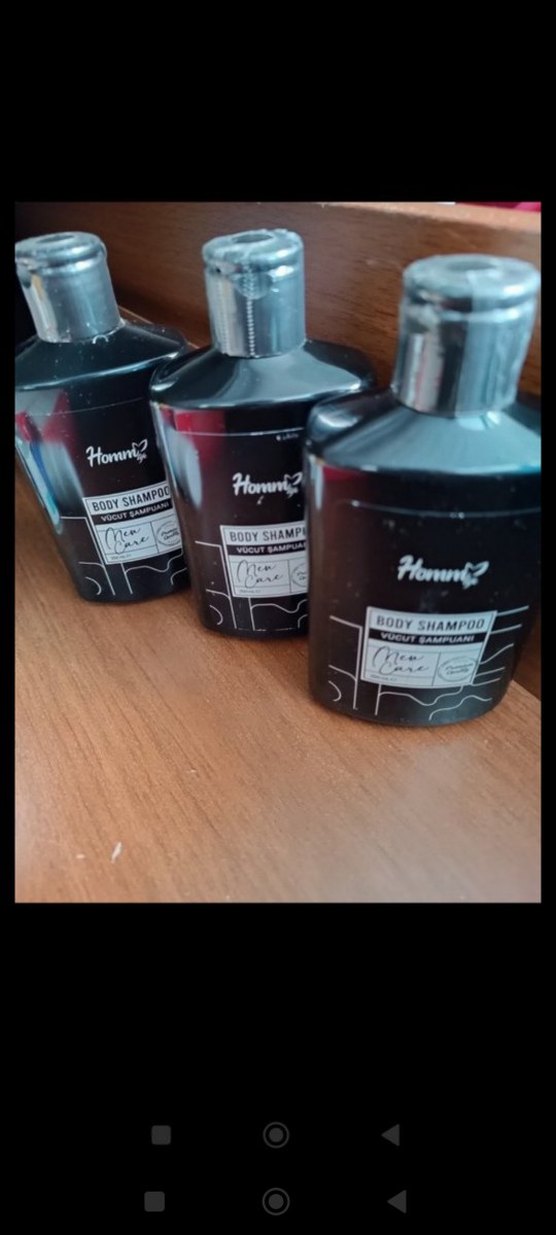 Hommy markasına ait, gümüş kapaklı siyah şişelerde üçlü vücut şampuanı. Cildi etkili şekilde temizler ve ferahlatır.adet fiyatı