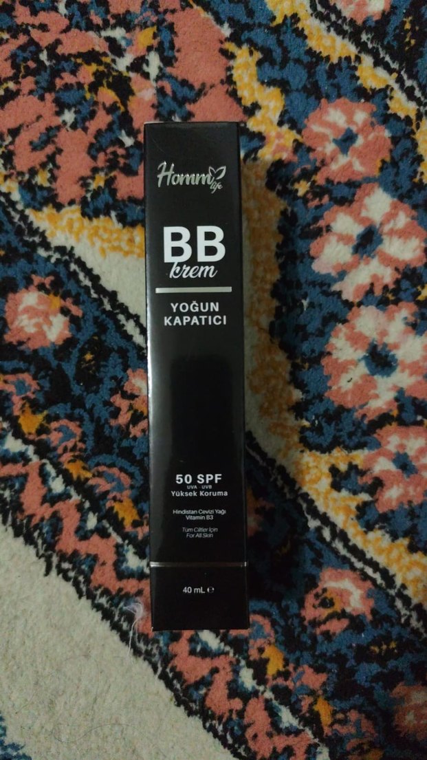Hommy BB krem, yoğun kapatıcılık ve 50 SPF yüksek koruma sağlar. 40 mL siyah ambalajda, tüm cilt tiplerine uygundur.