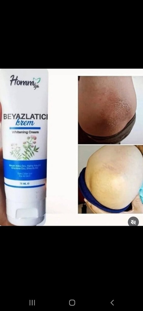 Hommye Beyazlatıcı Krem 75 ml, koyu ve pürüzlü cilt bölgelerini açarak daha düzgün bir görünüm sağlar.