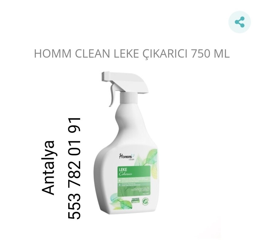 Homne markasına ait 750 ml kapasiteli sprey formda leke çıkarıcı. Kolay kullanım sağlayan tetik püskürtücülü şişe.