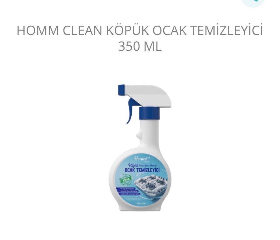 Homni köpük ocak temizleyici, 350 ml sprey şişede, ocak üzerindeki zorlu lekeleri etkili şekilde çıkarır.