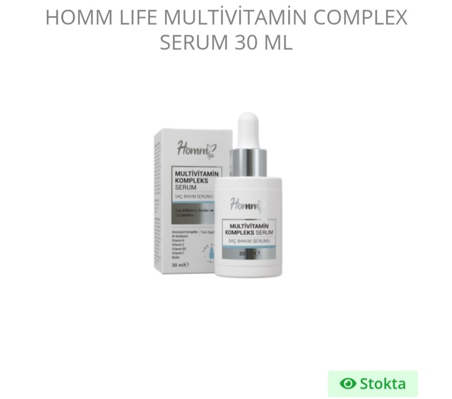 Homni Multivitamin Kompleks Saç Serumu, 30 ml şişede saç bakımında multivitamin formülü ile besleyici etki sağlar.