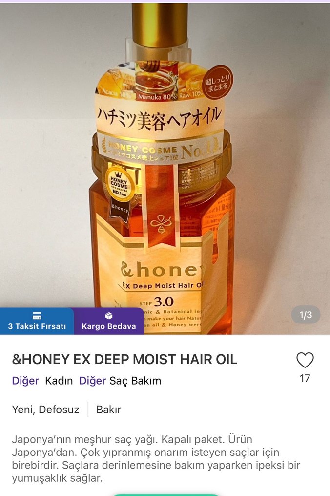 %80 Manuka balı içeren &Honey Derin Nem Saç Yağı, yıpranmış saçlara derin bakım ve ipeksi yumuşaklık sağlar. Japonya'dan kapalı paket ürün.