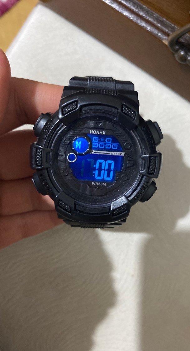 HONHX markalı, renkli ışıklı dijital ekranlı, siyah kasa ve sportif tasarımlı erkek kol saati. 30 metre su geçirmezlik özelliğine sahiptir. ⌚