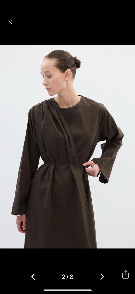 Bir kaç farklı modelle kullanabileceğiniz bir elbise. Renginde biraz solma var ve etek ucunda terzide halledilebilecek bir ufak sökük var. S-M beden. Sitesinde 2400 tl