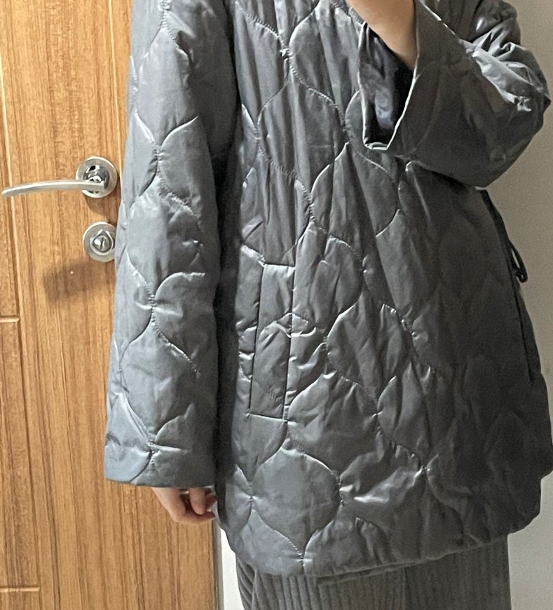 Gri renkte, anvelop kapamalı kapitone tasarımlı, kemerli ve kruvaze yaka detaylı kadın mont. Normal kesim, uzun kollu ve midi boydadır. Hooopstore markasına aittir