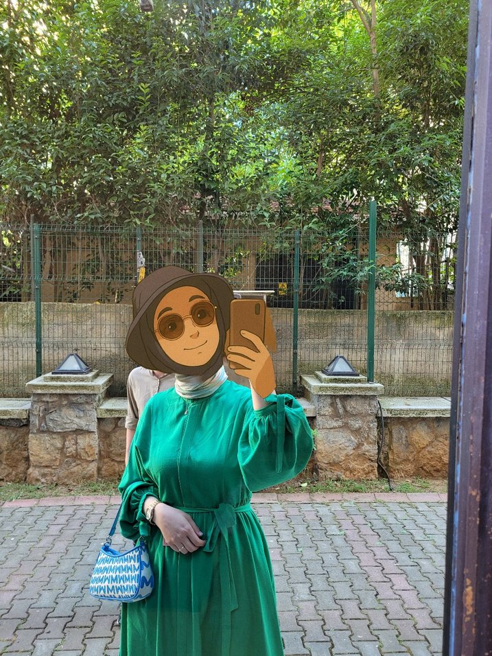Diger markasının düğmeli, uzun kollu, bohem tarzda yeşil keten uzun elbisesi, rahat kesim ve yuvarlak yaka detaylıdır. 1 2 kez giyildi temiz boydan düğmeli