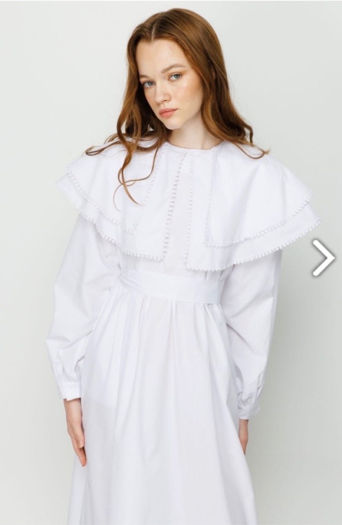 Pamuklu, beyaz uzun kollu elbise, bol kesim ve yakada fırfır detaylarıyla sade ve şık Paris tarzı sunar. Günlük kullanıma uygundur. Çook tatlı bir elbise, çok fazla elbisem olduğu için satışta