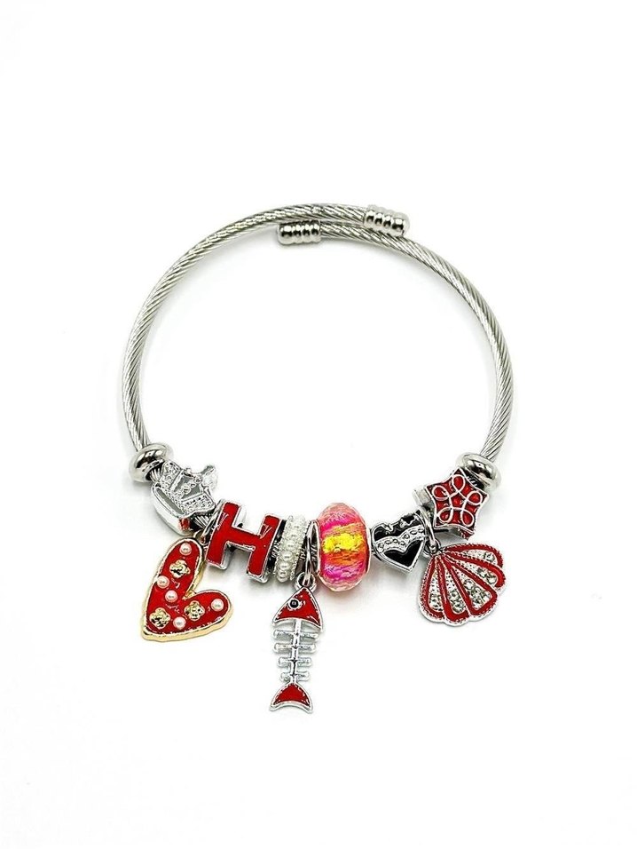 HOPE KIRMIZI ÇELİK PANDORA00106# Renkli boncuklar ve kırmızı işlemeli figürler içeren bohem tarzda gümüş renkli bileklik, günlük kullanım için uygundur.