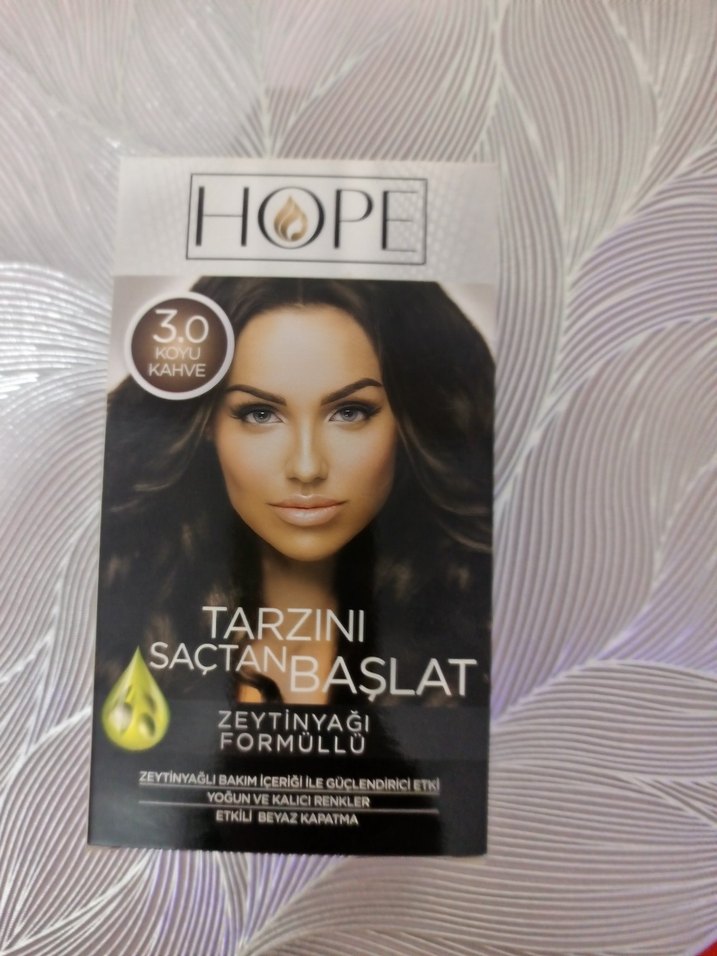 Hope saç boyası 3.0 koyu kahve, zeytinyağı formüllü. Yoğun ve kalıcı renk, etkili beyaz kapama sağlar. Besleyici bakım içerir. ♀️